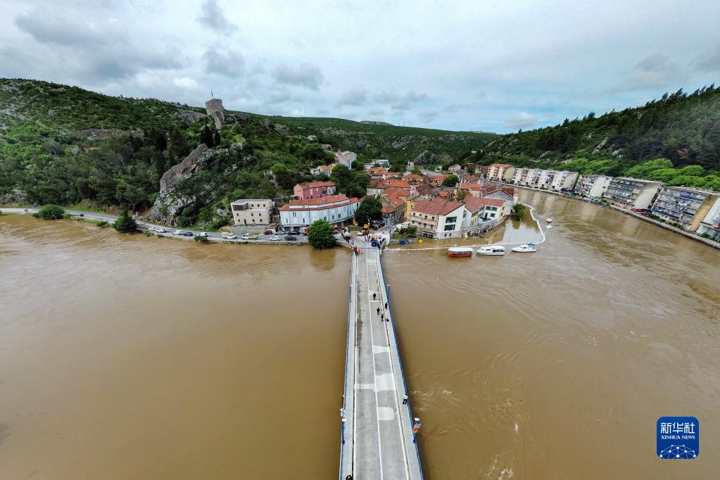 這是5月15日在克羅地亞奧布羅瓦茨拍攝的雨后水位暴漲的茲爾馬尼亞河。