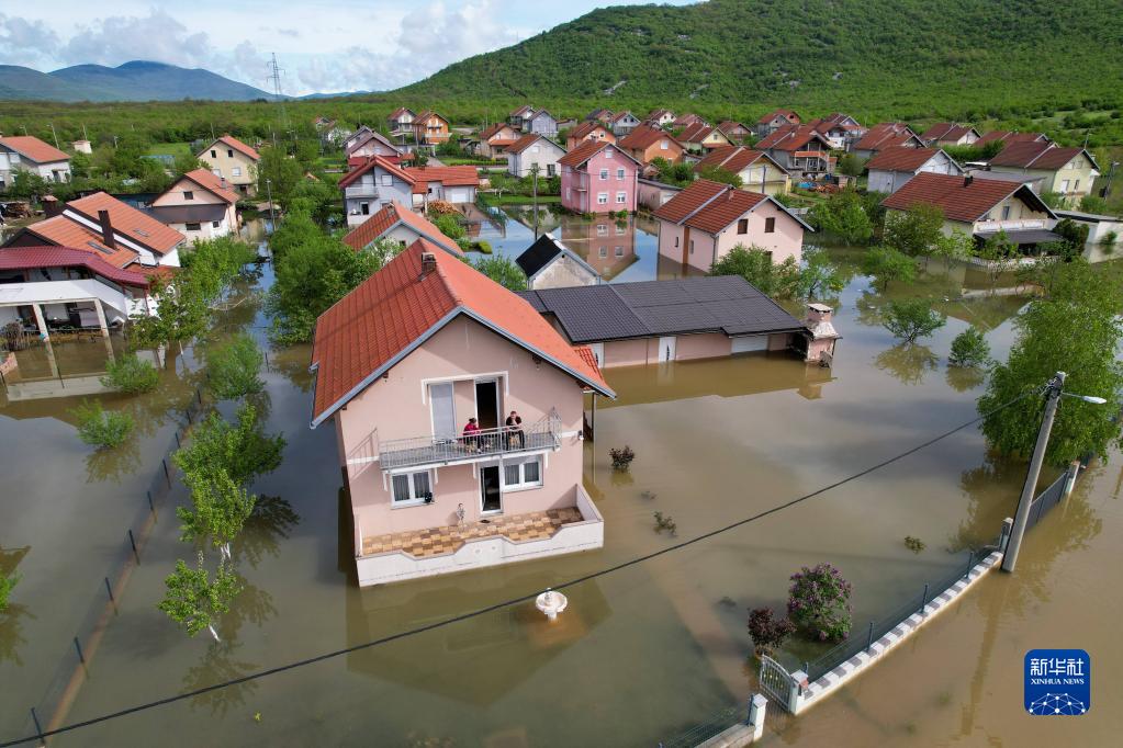這是5月15日在克羅地亞格拉查茨拍攝的浸泡在洪水中的房屋。