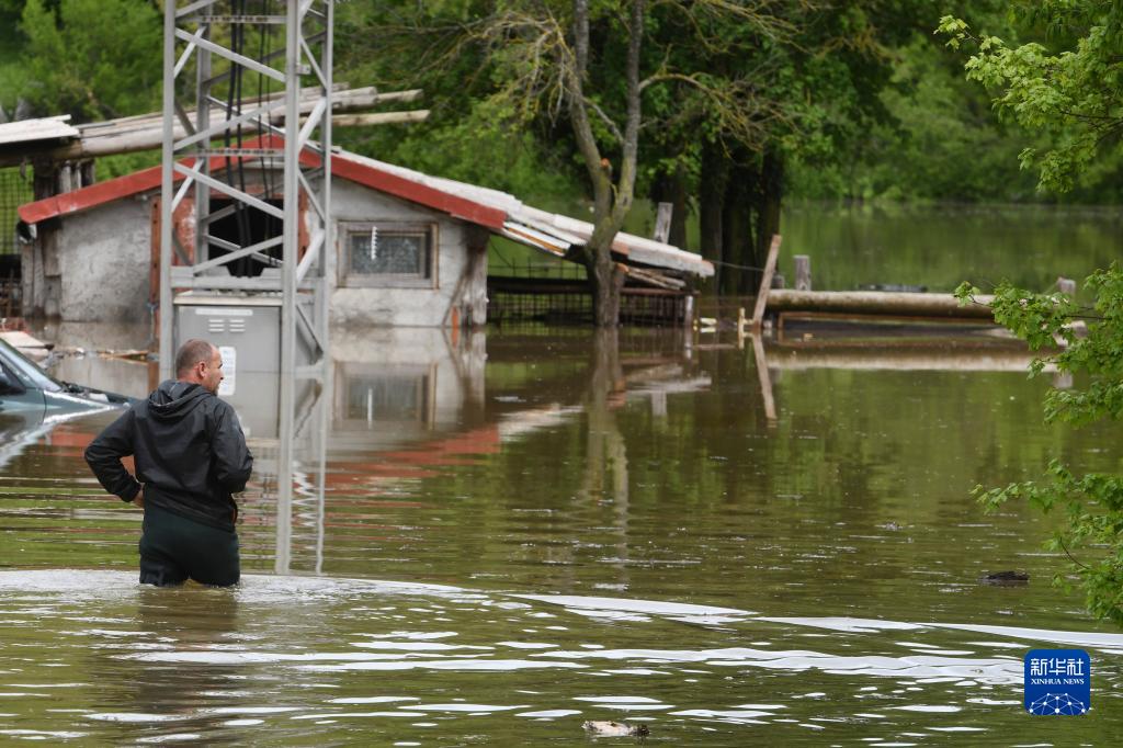 5月15日,在克羅地亞格拉查茨,當地人站在洪水中。