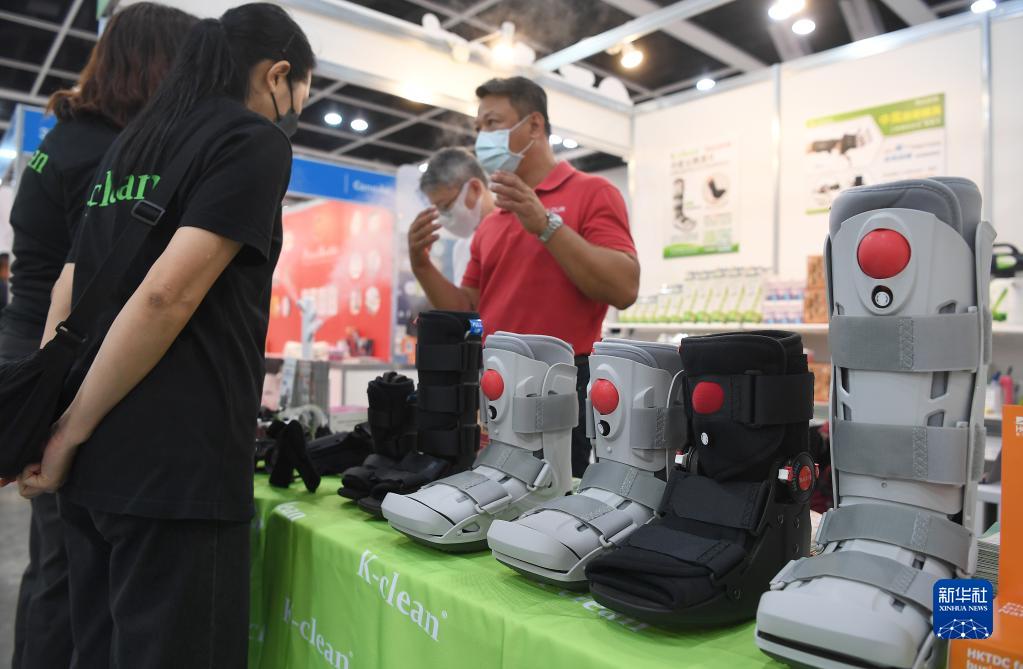 5月16日,參展商在第十四屆“香港國際醫療及保健展”上介紹功能足踝護具。