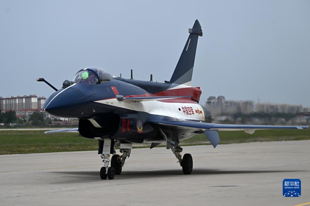 空軍八一飛行表演隊一架殲-10C表演機滑向起飛線,準備開展訓練(5月6日攝)。