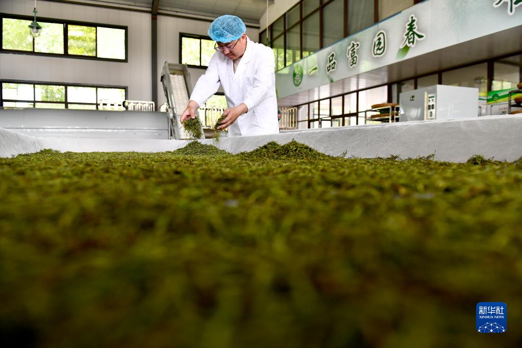 5月16日,在五蓮縣叩官鎮一處茶場,茶農在加工茶葉。