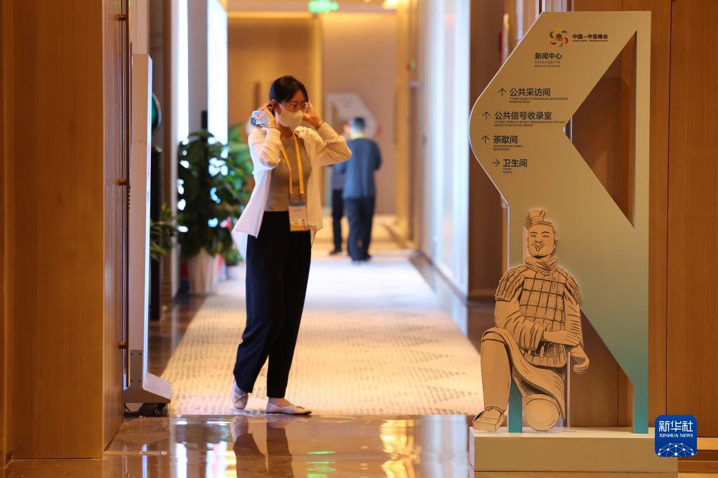 這是5月16日拍攝的中國-中亞峰會新聞中心。