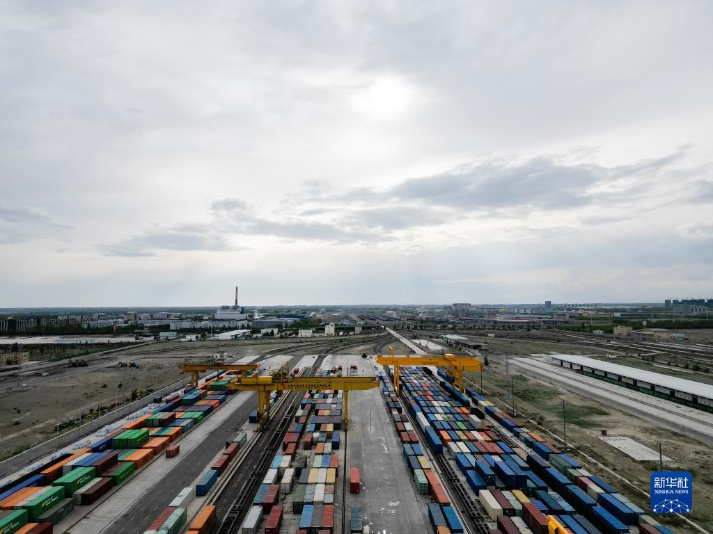 5月14日拍攝的霍爾果斯鐵路口岸換裝場(無人機照片)。