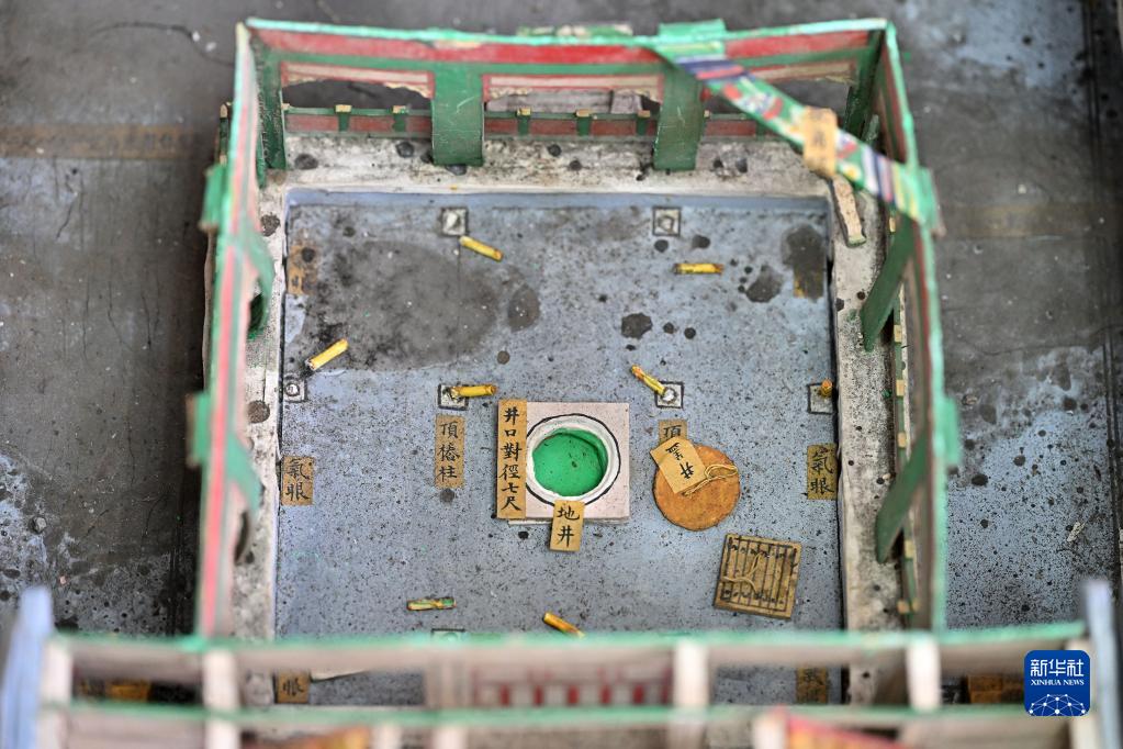 這是修復中的圓明園同樂園建筑群樣式雷燙樣文物局部(5月16日攝)。