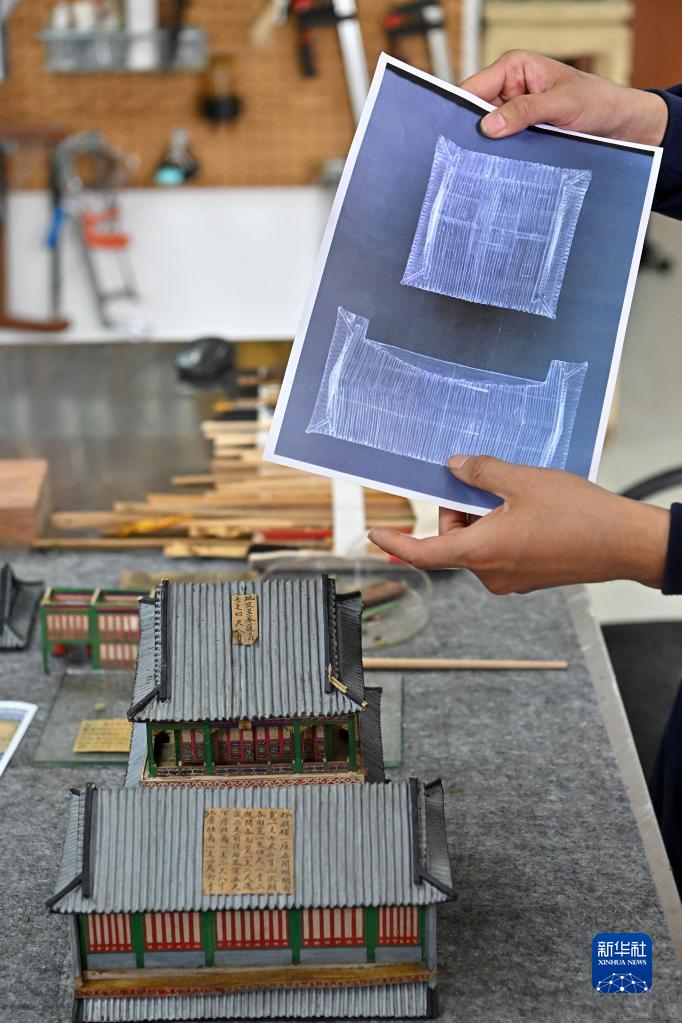 5月16日,國博文保院修復師向媒體記者介紹通過科學檢測手段分析研究圓明園同樂園建筑群樣式雷燙樣文物材質、構造等內容。