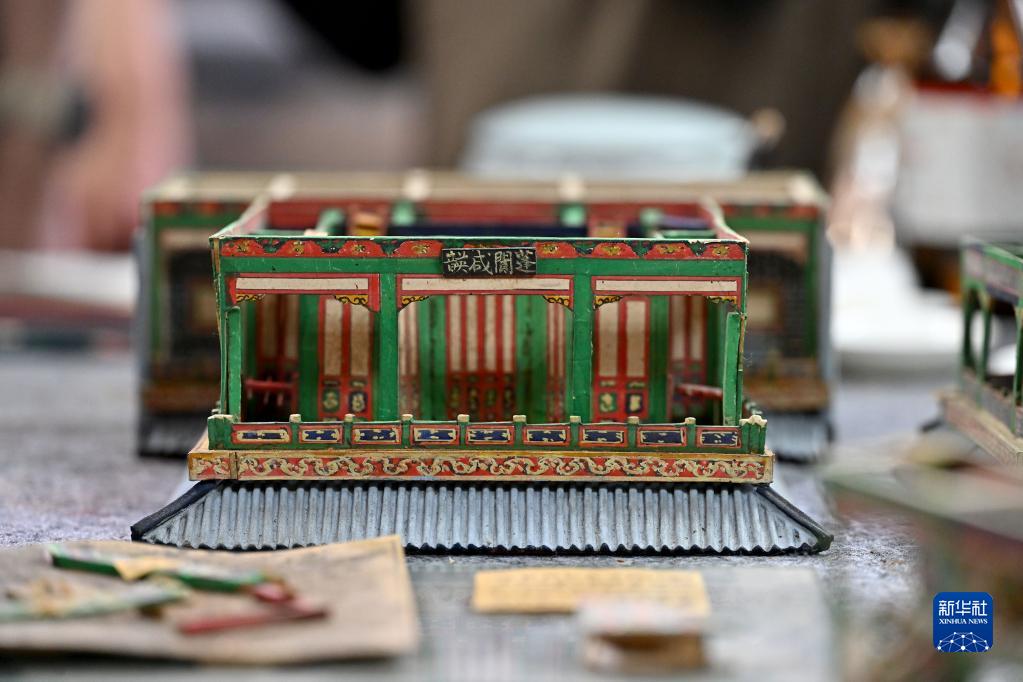 這是修復中的圓明園同樂園建筑群樣式雷燙樣文物部件(5月16日攝)。