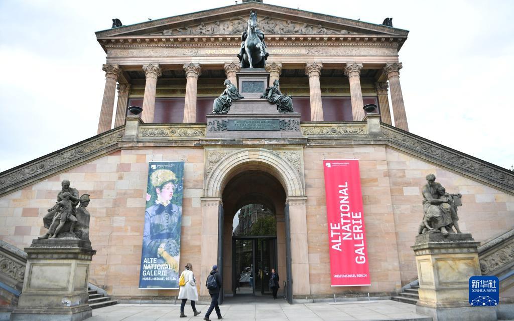 5月16日,在德國柏林博物館島,人們參觀老國家美術館。