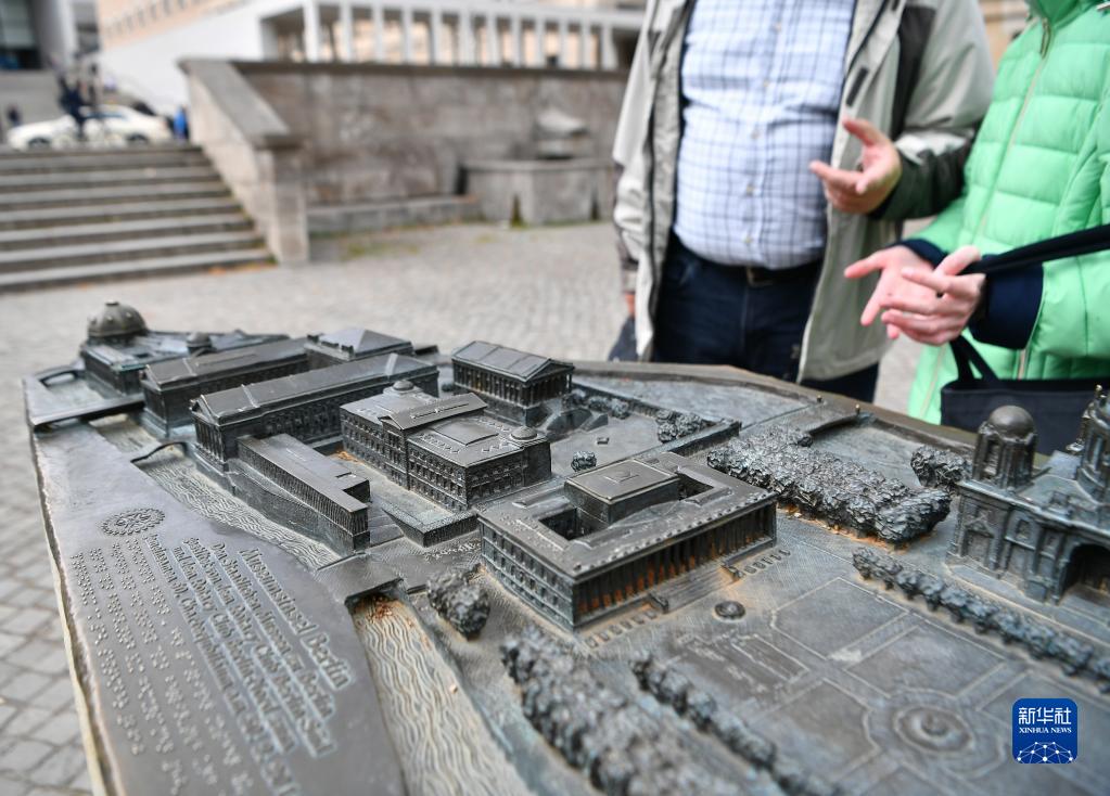 這是5月16日在德國柏林博物館島拍攝的博物館島模型。