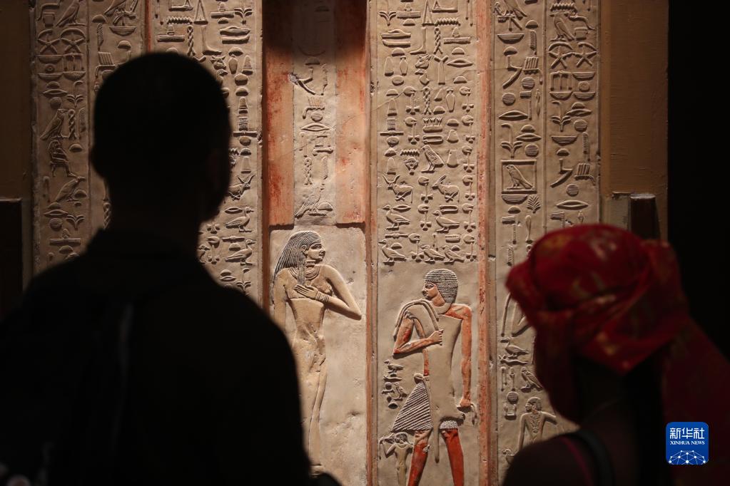 5月16日,人們在位于埃及首都開羅的埃及博物館參觀一塊浮雕。
