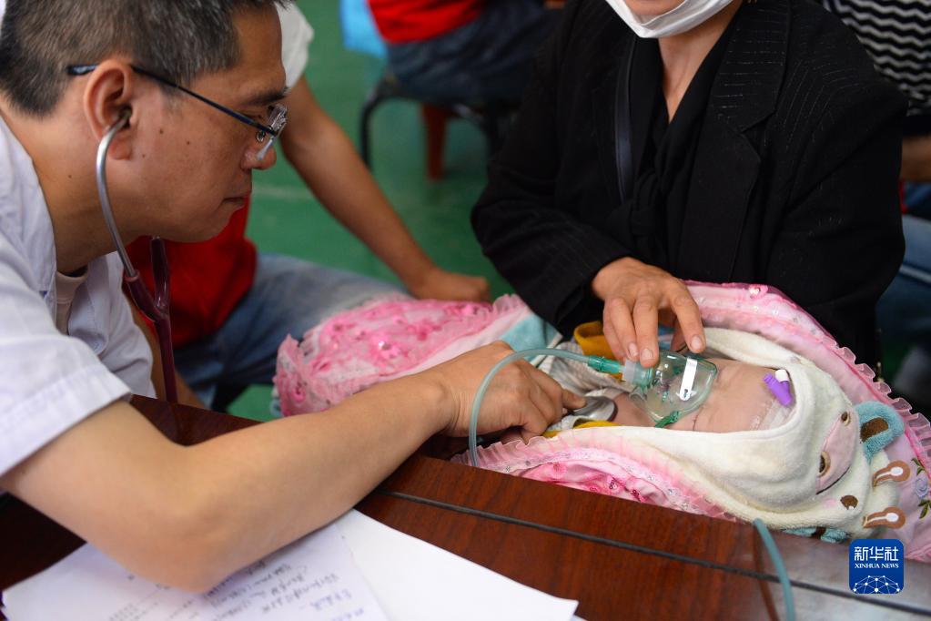 5月16日,在墨玉縣人民醫院,鄭州市第七人民醫院的醫療專家為孩子做檢查。