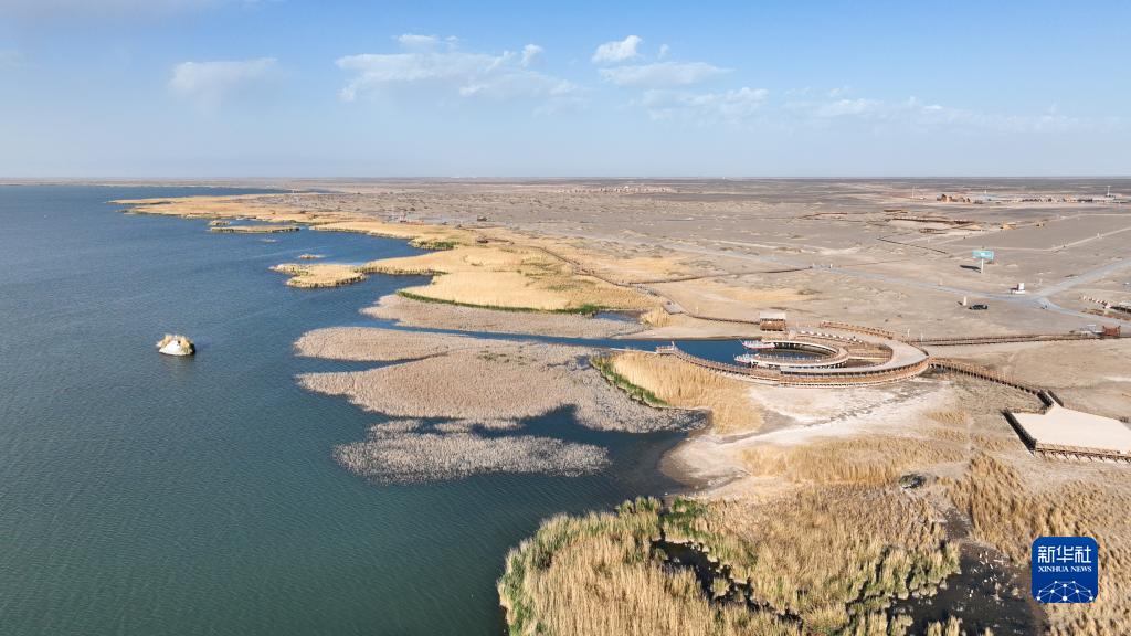 5月17日在內蒙古阿拉善盟額濟納旗居延海拍攝的風光(無人機照片)。