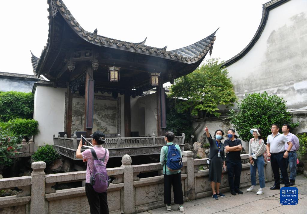 游客在位于福州三坊七巷歷史文化街區的全國重點文物保護單位水榭戲臺參觀(5月16日攝)。