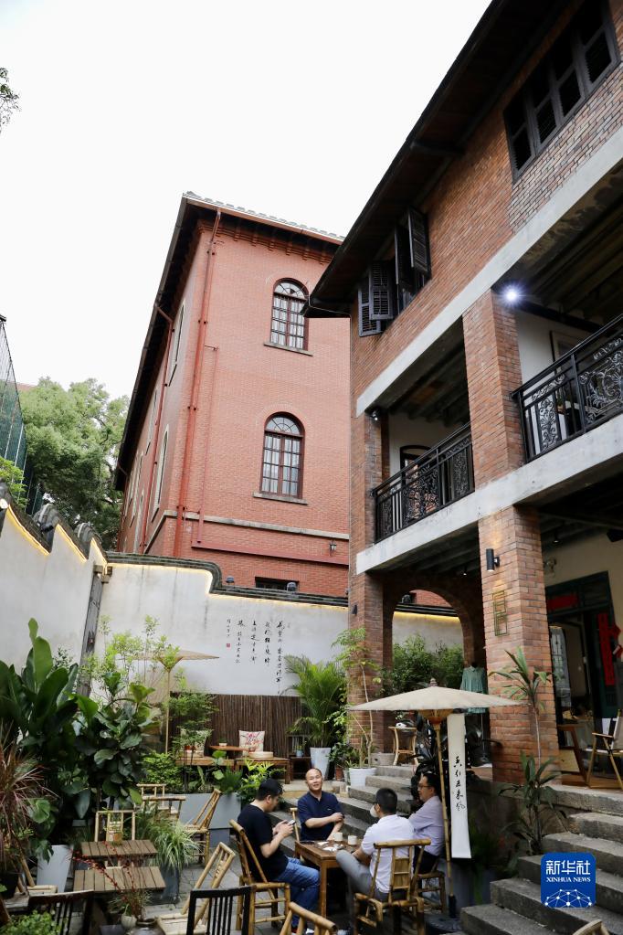 游客在福州煙臺山歷史風貌區古厝咖啡館內休閑(5月16日攝)。