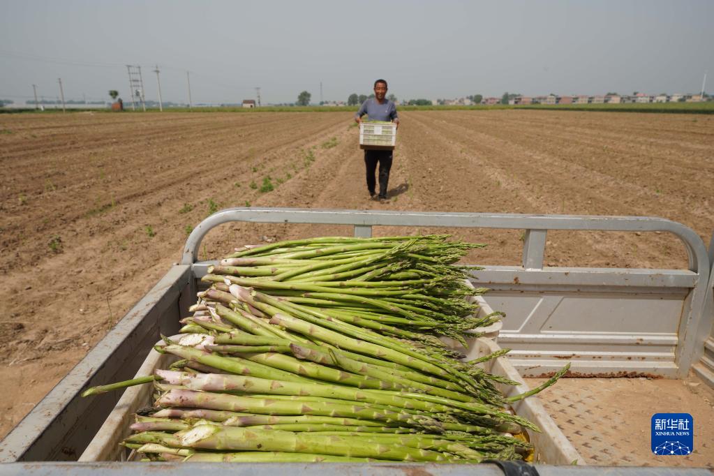 5月17日,河北省柏鄉縣西蘇村農民在搬運剛剛采收的蘆筍。