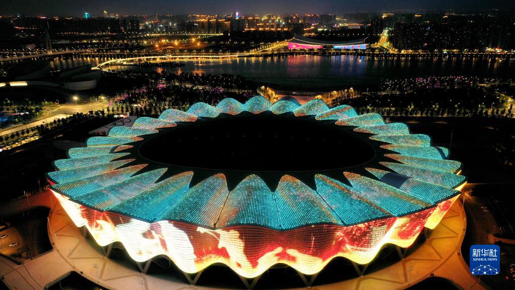 位于西安國際港務區的西安奧體中心(5月1日攝,無人機照片)。