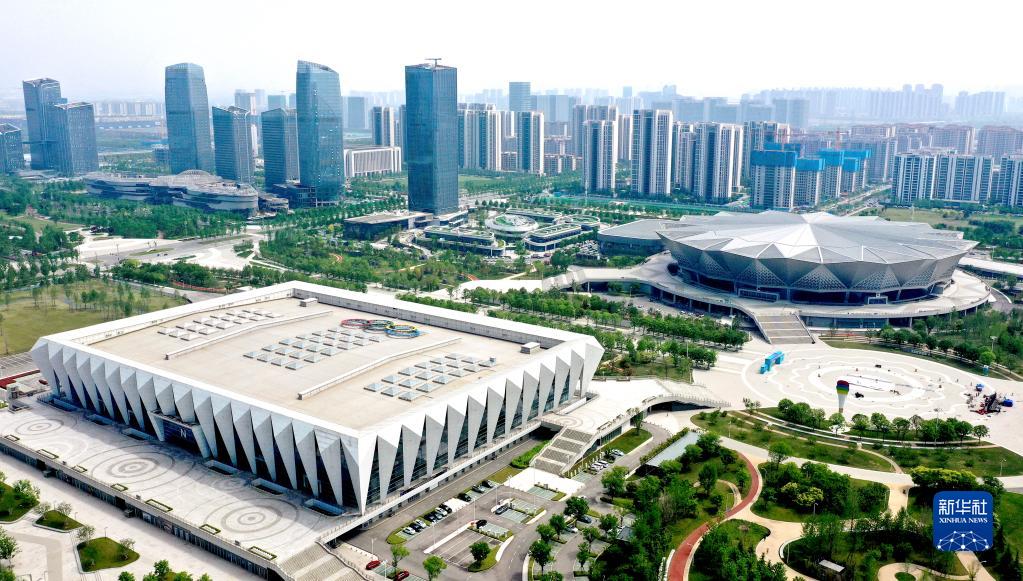位于西安國際港務區的西安奧體中心(4月26日攝,無人機照片)。