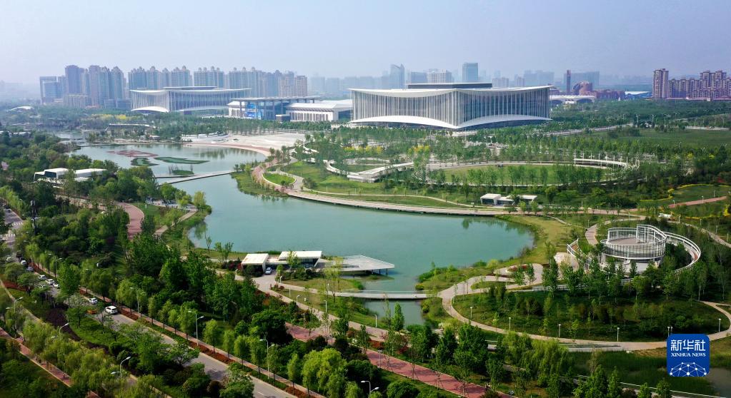位于西安浐灞生態區的西安國際會展中心(4月26日攝,無人機照片)。