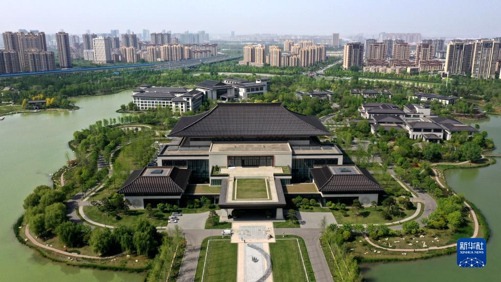 位于西安浐灞生態區的西安國際會議中心(4月16日攝,無人機照片)。