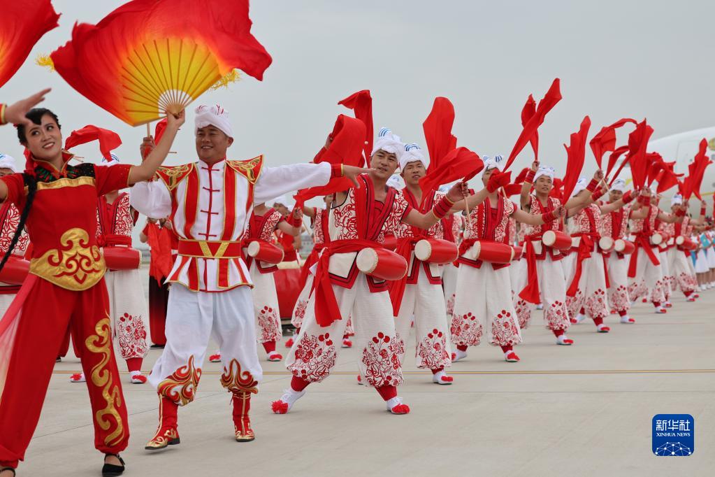 5月17日下午,出席中國-中亞峰會的哈薩克斯坦總統托卡耶夫抵達陜西省西安市。托卡耶夫是首位抵達西安的與會中亞國家元首。當地民眾以熱情的腰鼓、歡快的秧歌等民間藝術表演歡迎中亞國家貴賓到來。