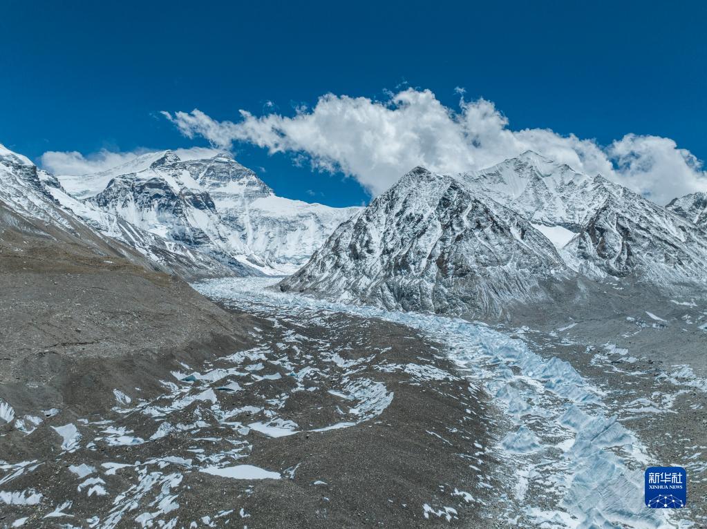 這是珠峰腳下的中絨布冰川(5月15日攝,無人機照片)。