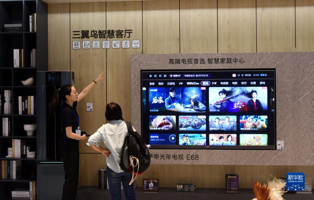 5月17日,一名工作人員在展會上為參觀者介紹“智慧客廳”。