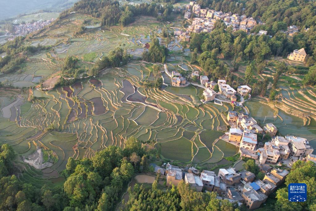 這是5月7日拍攝的元陽哈尼梯田核心區的壩達梯田(無人機照片)。