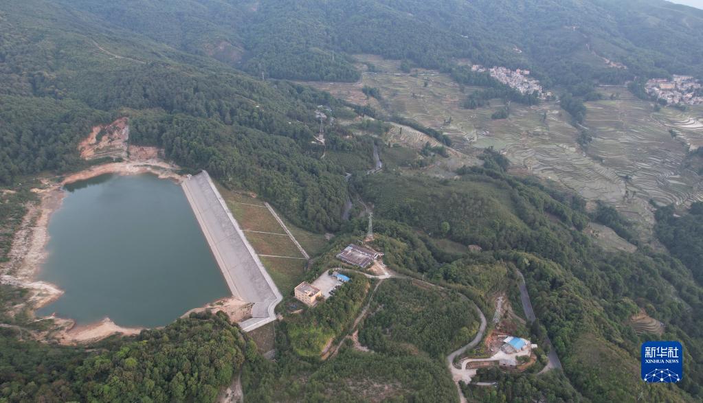 這是5月7日拍攝的元陽哈尼梯田的新灌溉水源——東觀音山水庫(無人機照片)。
