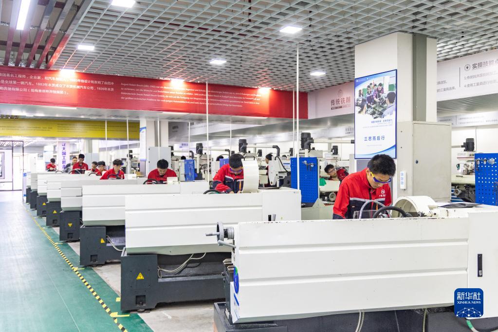 5月17日,在位于重慶永川職教中心的中德產業學院,學生在普車區進行實訓。
