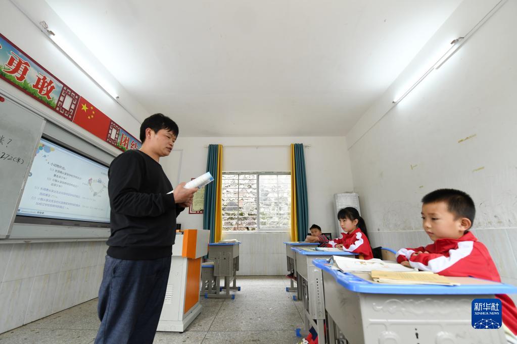 5月17日,在廣西靈川縣海洋鄉中心岐教學點,蔡教宏在給學生上課。