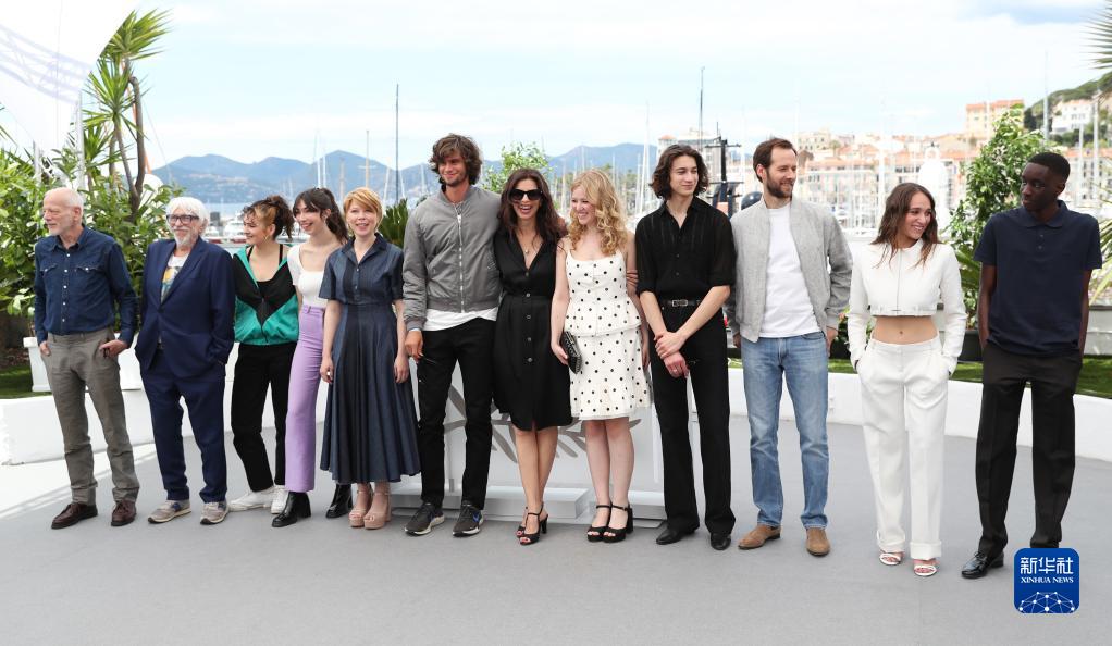 5月17日,在法國戛納舉行的第76屆戛納國際電影節上,開幕影片《杜巴利伯爵夫人》的導演麥溫·勒·貝斯柯(左七)攜主創亮相拍照式。