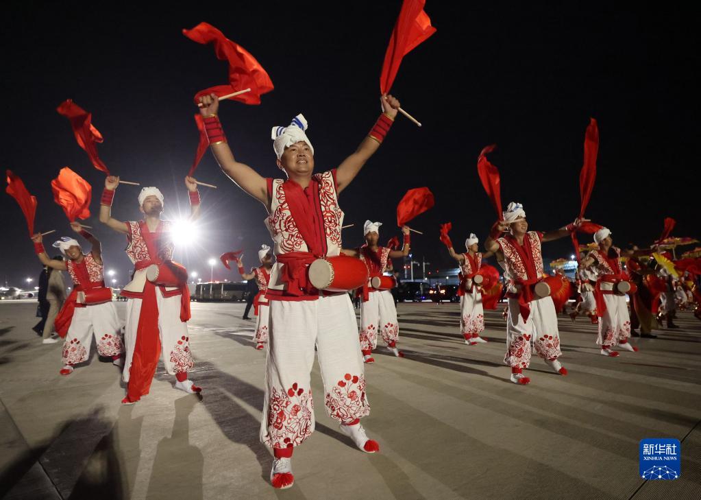 5月18日凌晨,出席中國-中亞峰會的烏茲別克斯坦總統米爾濟約耶夫抵達陜西省西安市。這是歡迎儀式現場。