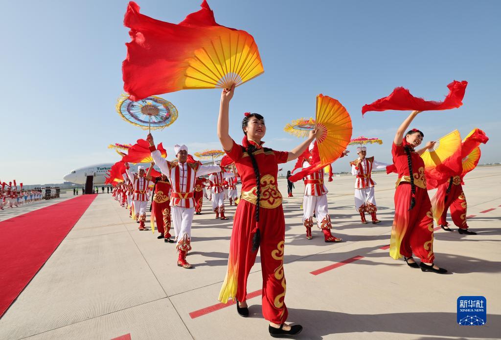 5月18日上午,出席中國-中亞峰會的土庫曼斯坦總統別爾德穆哈梅多夫抵達陜西省西安市。這是歡迎儀式現場。
