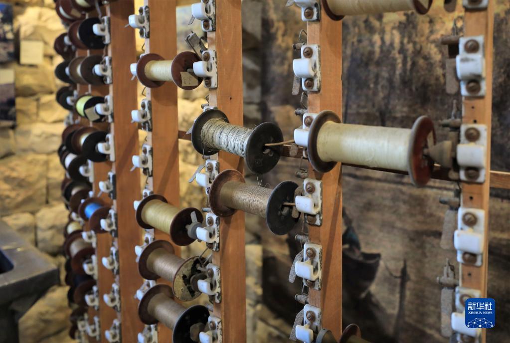 這是5月17日在黎巴嫩卜蘇斯絲綢博物館拍攝的絲線圈。