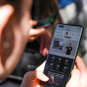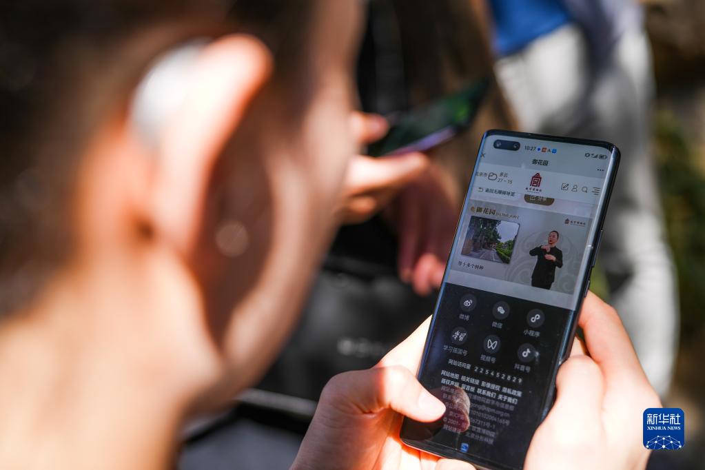 5月18日,一名聽障人士在觀看手語講解視頻。