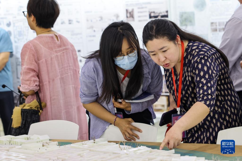 5月18日,觀眾在博覽會上參觀建筑景觀設計作品。