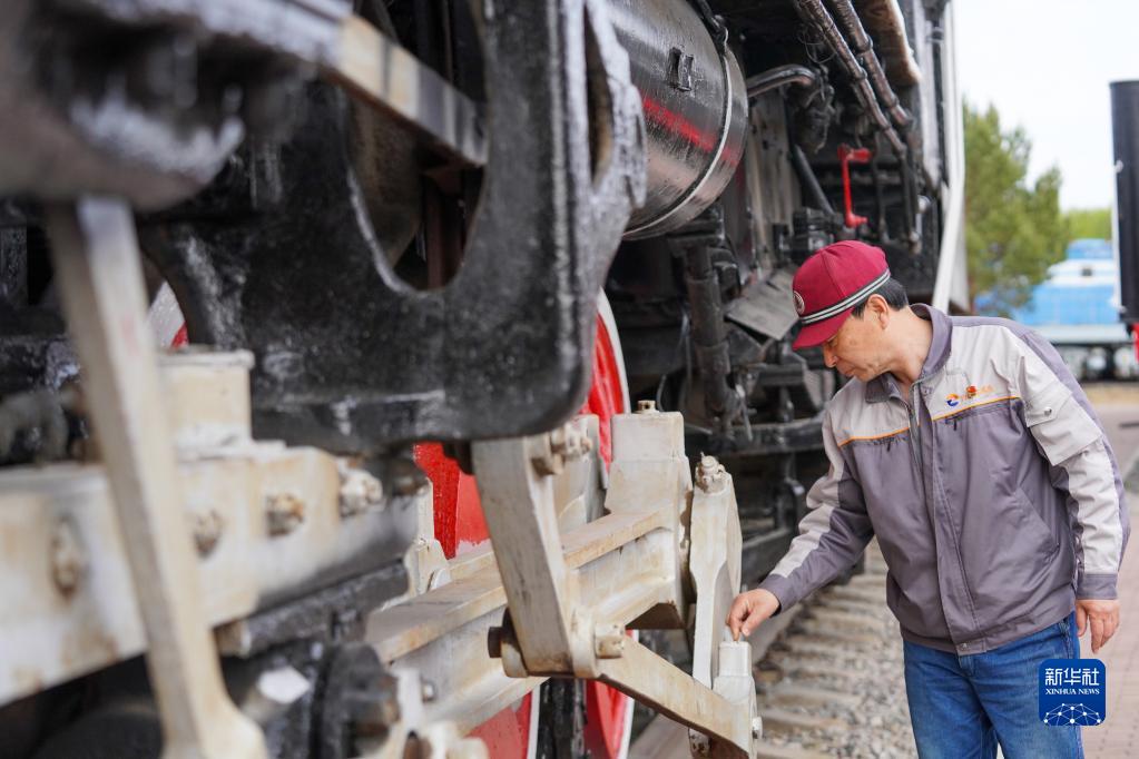 5月17日,中國鐵路沈陽局集團有限公司白城機務段工作人員在大安北蒸汽機車陳列館巡查。