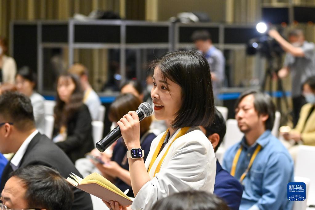 5月18日,中國-中亞峰會新聞中心舉行第三場吹風會,邀請中國國際商會、中工國際工程股份有限公司、陜西旅游集團有限公司有關負責人介紹情況并回答記者提問。這是記者在吹風會上提問。