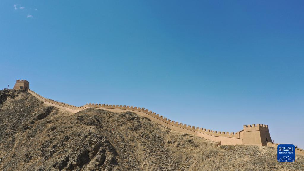 這是5月17日在甘肅省嘉峪關市拍攝的懸壁長城(無人機照片)。