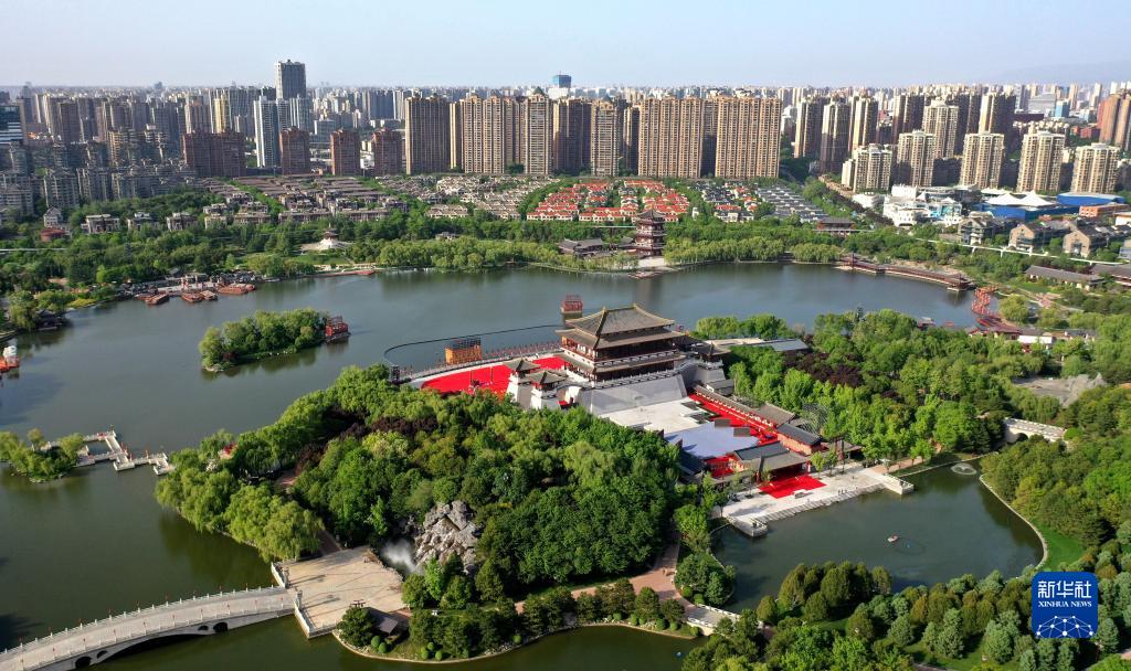 西安大唐芙蓉園(4月25日攝,無人機照片)。