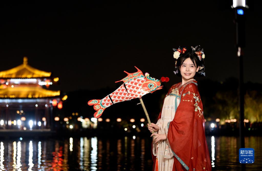 位于陜西西安城南的大唐芙蓉園,是在唐代芙蓉園遺址以北、仿照唐代皇家園林式樣重建的一座全方位展示盛唐風貌的大型文化主題遺址公園。園內紫云樓館橋飛渡,彩霞亭煙波浮動,望春閣亭亭玉立……漫步其間,隨處可見身著古裝的游客攜親友同行,在流動的光影之間,恍若穿越千年。水舞燈光秀《大唐追夢》、歌舞劇《夢回大唐》、宮廷燕樂《鼓》等創新演藝也讓唐風國韻在此散發經久不衰的藝術魅力。