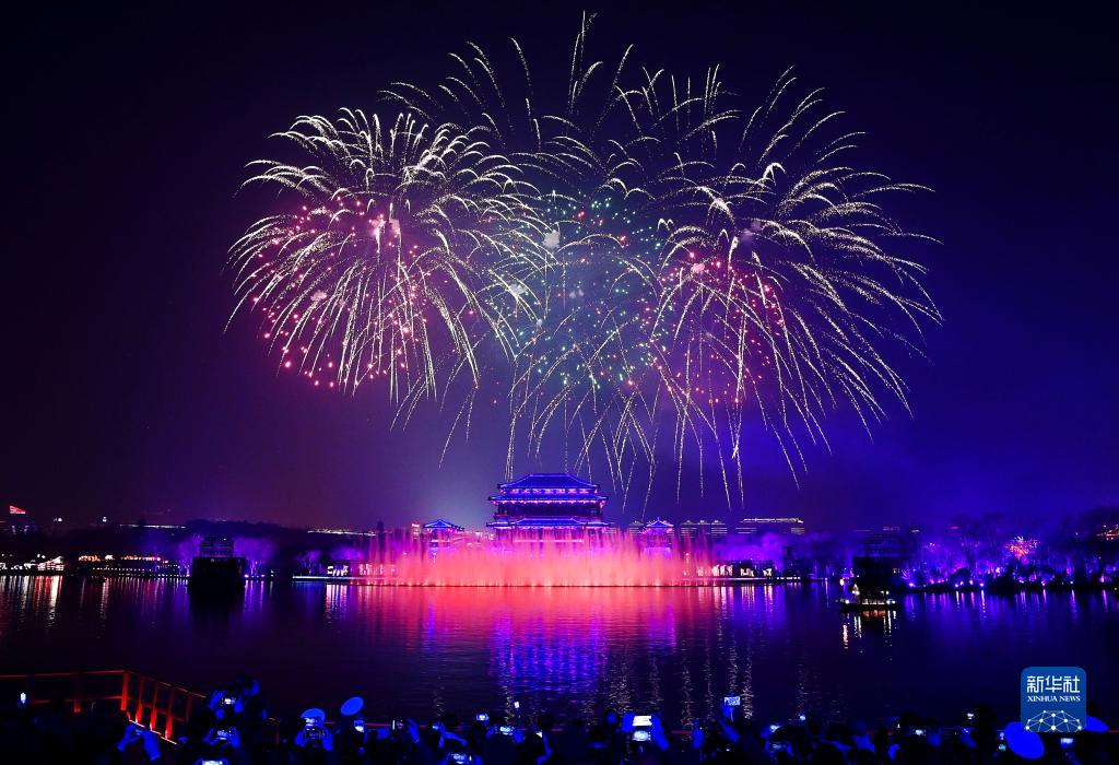 西安大唐芙蓉園2023年元宵節煙花晚會(2月5日攝)。