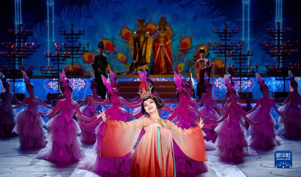 西安大唐芙蓉園內上演的歌舞劇《夢回大唐》(1月24日攝)。