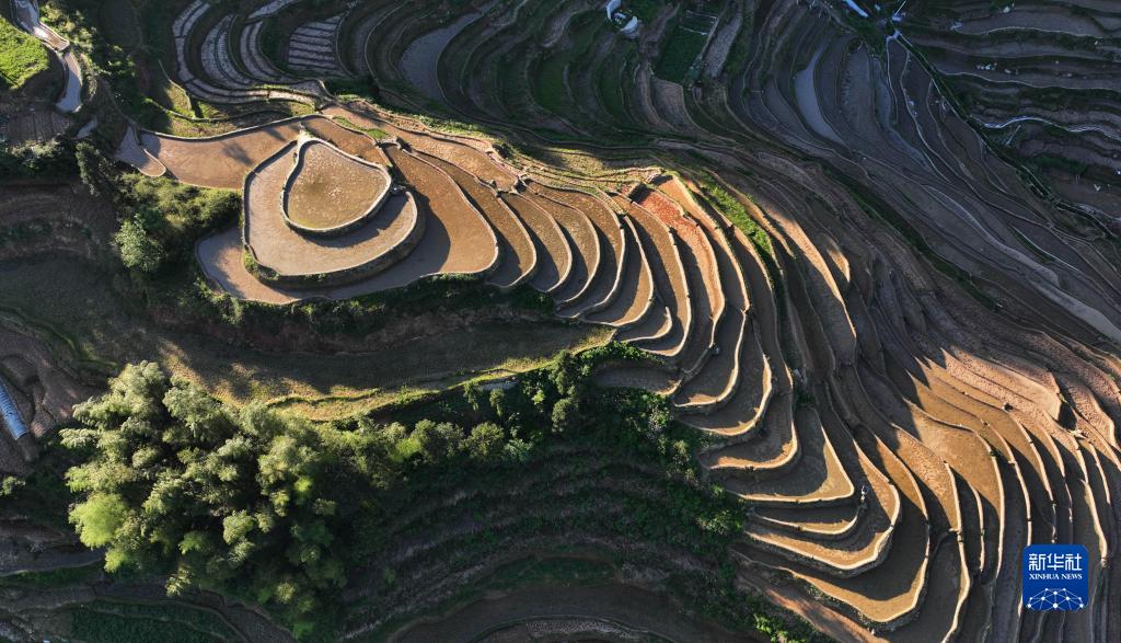 近日,湖南省婁底市新化縣紫鵲界梯田蓄水備耕,水影天光如詩如畫。