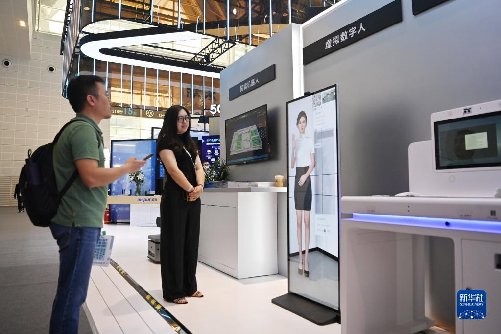 5月18日,觀眾在第七屆世界智能大會智能科技展上參觀浪潮展區。