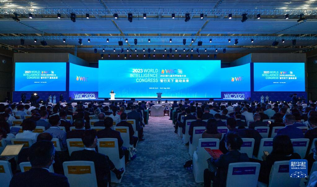 這是5月18日拍攝的第七屆世界智能大會開幕式現場。