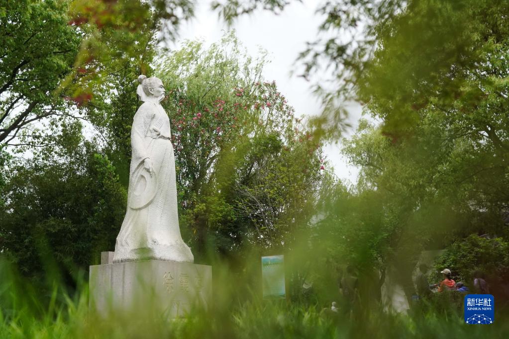 仰圣園內的徐霞客塑像(5月17日攝)。