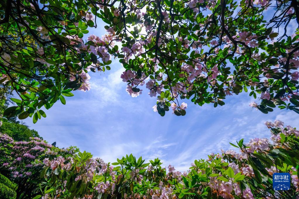 5月16日,在天臺山華頂國家森林公園,云頂杜鵑競相開放。徐霞客在游記中寫道:“琪花玉樹,玲瓏彌望?!?/p>