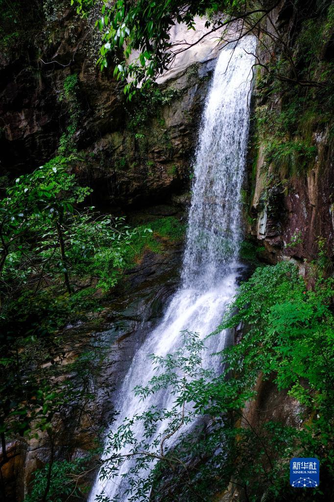 天臺山瓊臺仙谷景區一處瀑布(5月16日攝)。