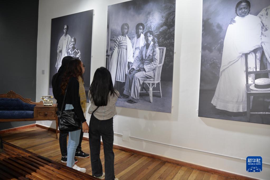 5月18日,在位于馬達加斯加首都塔那那利佛的照片博物館,當地學生參觀馬達加斯加傳統服飾圖片展。